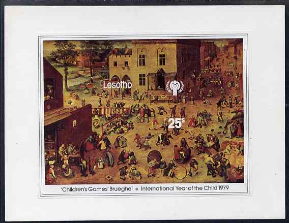 Lesotho 1979 International Year of the Child m/sheet (Painting by Brueghel) imperf proof mounted on card, as SG MS 382
