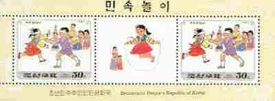 North Korea 1997 Children's Games (2nd series) 30ch (Blind Man's Buff) perf m/sheet containing 2 stamps plus label
