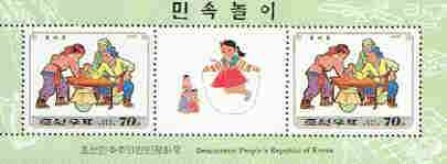 North Korea 1997 Children's Games (2nd series) 70ch (Arm Wrestling) perf m/sheet containing 2 stamps plus label