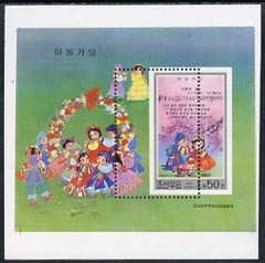 North Korea 2000 Nursery Rhymes proof of m/sheet with perforations doubled, both misplaced (14mm & 36mm)
