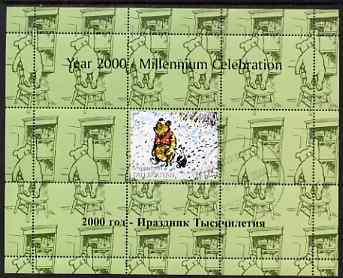 Tadjikistan 1999 Winnie the Pooh perf sheetlet #4 containing 1 stamp & 8 labels (green background colour), unmounted mint