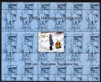 Tadjikistan 1999 Winnie the Pooh perf sheetlet #6 containing 1 stamp & 8 labels (blue background colour), unmounted mint