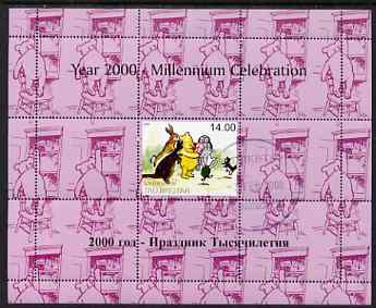 Tadjikistan 1999 Winnie the Pooh perf sheetlet #7 containing 1 stamp & 8 labels (magenta background colour), unmounted mint