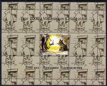 Tadjikistan 1999 Winnie the Pooh perf sheetlet #9 containing 1 stamp & 8 labels (grey-green background colour), unmounted mint