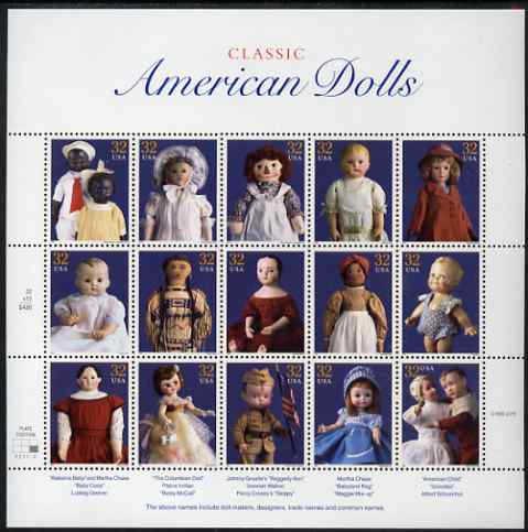 United States 1997 American Dolls se-tenant sheet of 15 plus two labels unmounted mint, SG 3346a