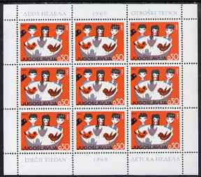 Yugoslavia 1969 Children's Week 50p in complete sheetlet of 9 unmounted mint, SG 1389