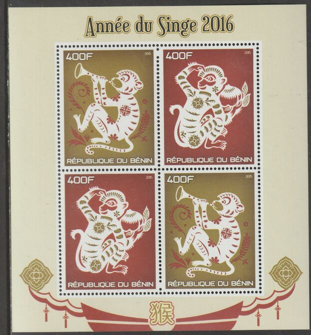 Benin 2015 Chinese New Year - Year of the Monkey perf sheet containing four values unmounted mint