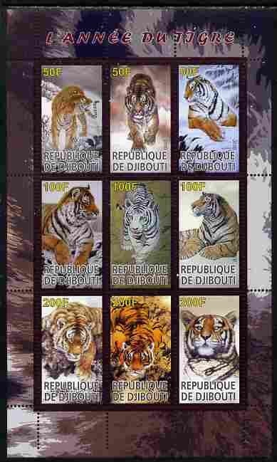 Djibouti 2010 Chinese New Year - Year of the Tiger perf sheetlet containing 9 values unmounted mint