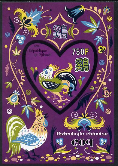 Djibouti 2013 Chinese New Year Symbols - Cock imperf sheetlet containing one heart-shaped value unmounted mint