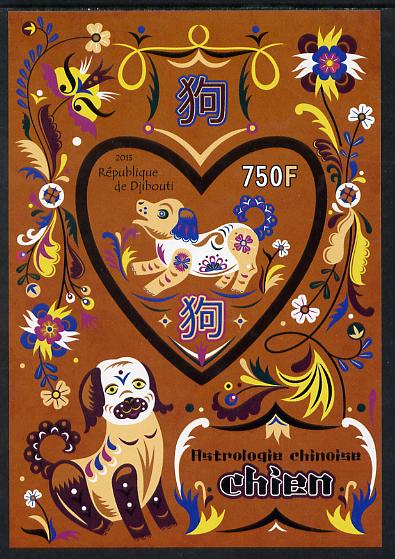 Djibouti 2013 Chinese New Year Symbols - Dog imperf sheetlet containing one heart-shaped value unmounted mint
