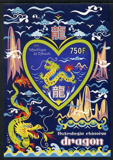 Djibouti 2013 Chinese New Year Symbols - Dragon imperf sheetlet containing one heart-shaped value unmounted mint