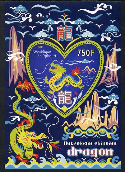 Djibouti 2013 Chinese New Year Symbols - Dragon perf sheetlet containing one heart-shaped value unmounted mint