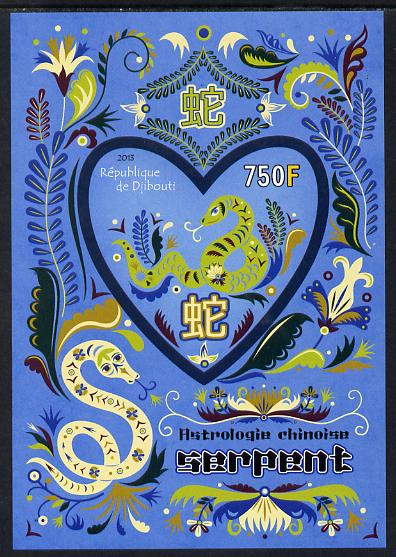 Djibouti 2013 Chinese New Year Symbols - Snake imperf sheetlet containing one heart-shaped value unmounted mint