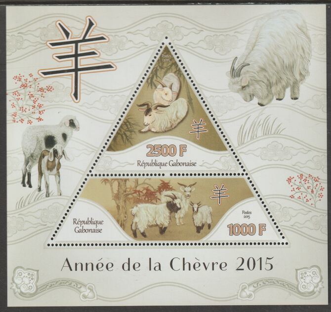 Gabon 2015 Chinese New Year - Year of the Goat perf deluxe sheet containing two shaped values unmounted mint