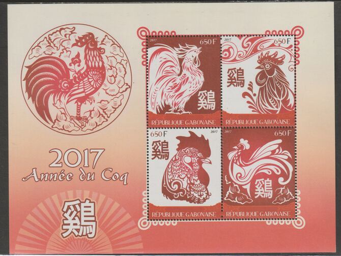 Gabon 2017 Lunar New Year - Year of the Rooster perf sheet containing four values unmounted mint