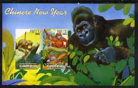 Gambia 2003 Chinese New Year - Year of the Monkey imperf sheetlet containing 2 values, unmounted mint