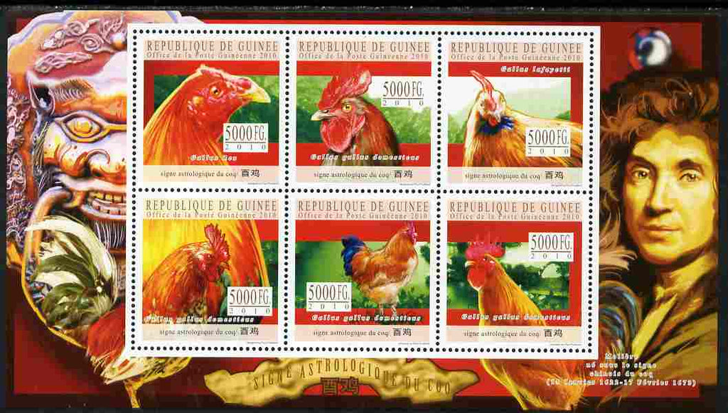 Guinea - Conakry 2010 Astrological Sign of the Cock perf sheetlet containing 6 values unmounted mint, Michel 7835-40