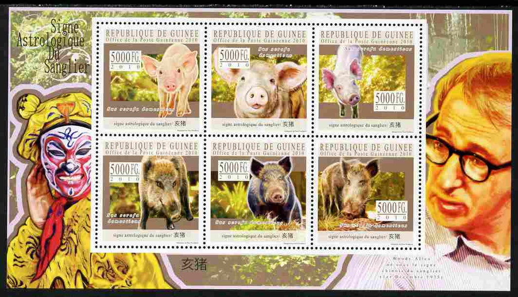 Guinea - Conakry 2010 Astrological Sign of the Pig perf sheetlet containing 6 values unmounted mint, Michel 7847-52