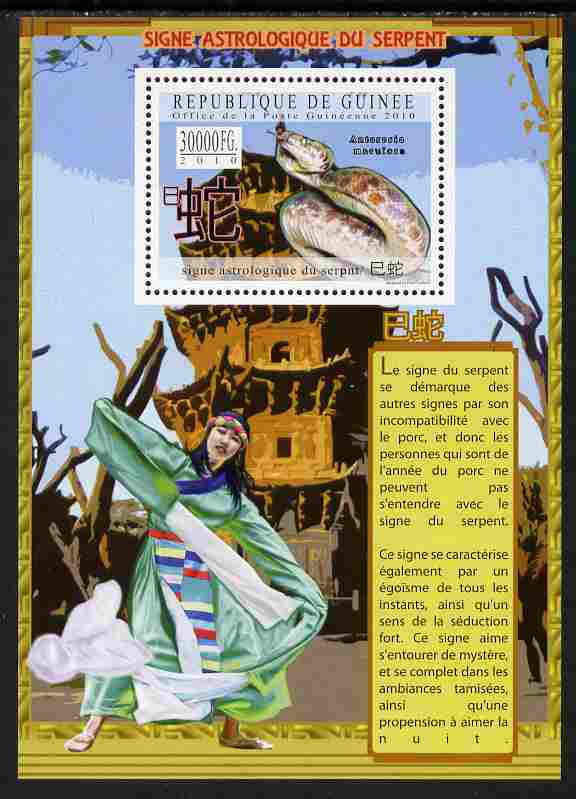 Guinea - Conakry 2010 Astrological Sign of the Snake perf s/sheet unmounted mint Michel BL 1868