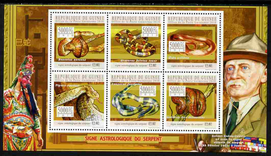 Guinea - Conakry 2010 Astrological Sign of the Snake perf sheetlet containing 6 values unmounted mint, Michel 7811-16