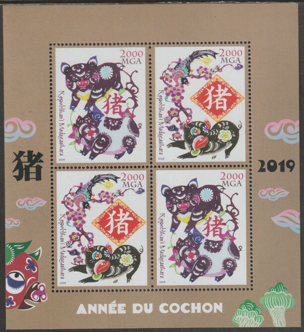 Madagascar 2019 Lunar New Year - Year of the Pig perf sheet containing four values unmounted mint
