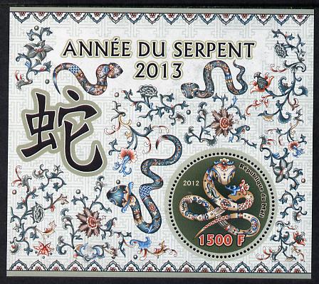 Mali 2012 Chinese New Year - Year of the Snake perf m/sheet containing circular shaped 1500F value unmounted mint