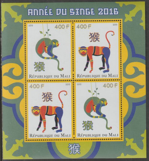 Mali 2015 Chinese New Year - Year of the Monkey perf sheet containing four values unmounted mint