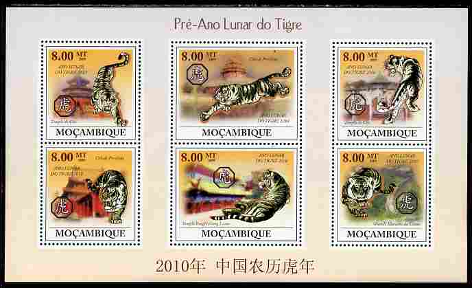 Mozambique 2009 Chinese New Year - Year of the Tiger perf sheetlet containing 6 vaues unmounted mint
