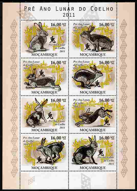 Mozambique 2010 Chinese New Year - Year of the Rabbit perf sheetlet containing 8 values unmounted mint
