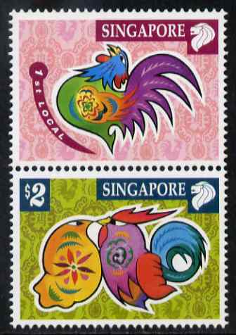 Singapore 2005 Chinese New Year - Year of the Cock set of 2 in se-tenant pair unmounted mint, SG1449-50