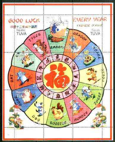 Touva 1998 Chinese New Year - Year of the Rabbit composite perf sheet containing 9 values unmounted mint