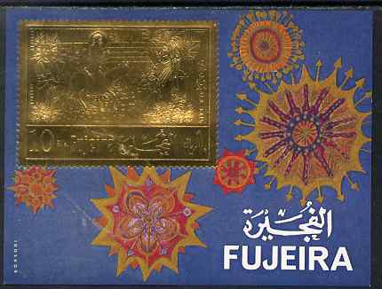 Fujeira 1971 Christmas 10r m/sheet with stamp design embossed in gold foil, perf