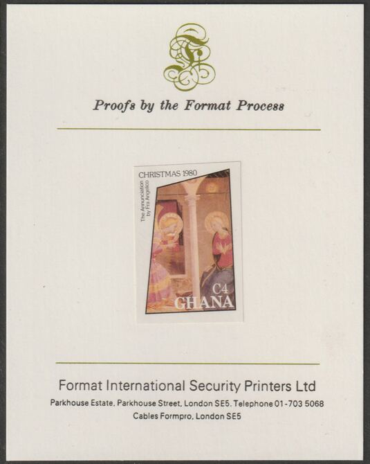 Ghana 1980 Christmas 4C imperf proof mounted on Format International proof card as SG 932