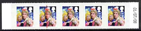 Great Britain 2008 Christmas 2nd class self adhesive strip of 5 (Ugly Sisters) with fine Doctor Blade flaw down stamp 2, as SG 2876