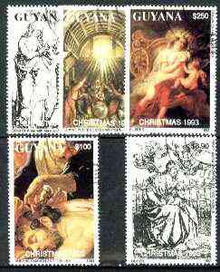 Guyana 1993 Christmas Paintings complete set of 5 fine cto used (note different designs & values to those in Gibbons)*