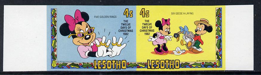 Lesotho 1982 Walt Disney Christmas 4s unmounted mint imperf se-tenant pair, as SG 527a