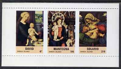 Sanda Island 1967 Christmas, Religious Paintings m/sheet containing set of 3 with vertical roulettes omitted, unmounted mint but some off-set