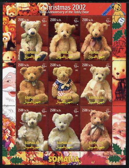 Somalia 2002 Christmas - Centenary of Teddy Bear perf sheetlet containing 9 values unmounted mint. Note this item is privately produced and is offered purely on its thematic appeal