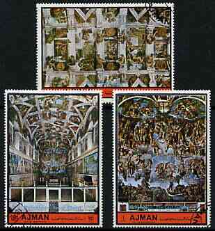 Ajman 1972 The Sistine Chapel by Michelangelo perf set of 3 cto used, Mi 1874-76