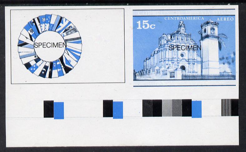 El Salvador 1971 Churches 15c (SG 1372) in blue & black colours only IMPERF & se-tenant with Singapore 30c Heads of Govt, both optd SPECIMEN unmounted mint, exceptionally scarce (with photocopy of original uncut sheet)
