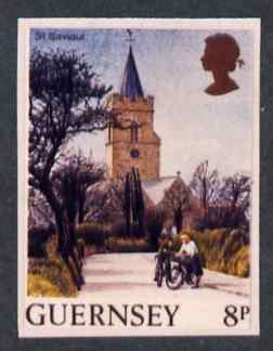 Guernsey 1984 Pictorial def 8p full colour imperf die proof on Cromalin plastic card with QUESTA printed on the back, exceptionally rare (ex archives) as SG303