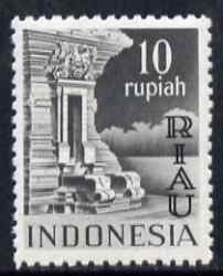 Indonesia - Riau-Lingga 1954 Temple at Panahan 10r grey-black overprinted RIAU unmounted mint as SG 21