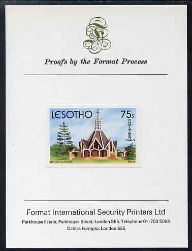 Lesotho 1980 Christmas 75s University Chapel imperf proof mounted on Format International Proof card, rare thus, as SG 429