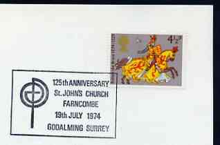 Postmark - Great Britain 1974 card bearing illustrated cancellation for 125th Anniversary of St John's Church, Farncombe