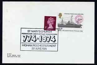 Postmark - Great Britain 1974 card bearing special cancellation for 12th Century St Mary's Church, Higham
