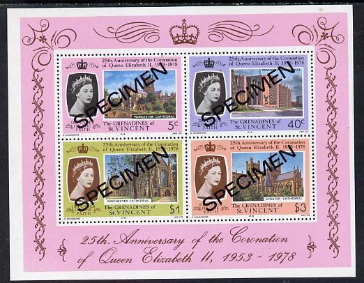 St Vincent - Grenadines 1978 Coronation 25th Anniversary m/sheet (Cathedrals) opt'd Specimen unmounted mint, as SG MS 134