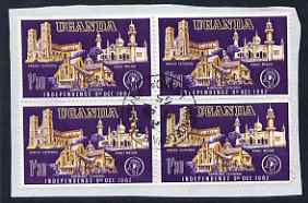 Uganda 1962 independence 1s30 block of 4 fine used, one stamp with large flaw by Dome of Cathedral, SG 106v19