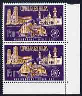 Uganda 1962 independence 1s30 marginal pair unmounted mint, one stamp with large flaw by Dome of Cathedral, SG 106v19