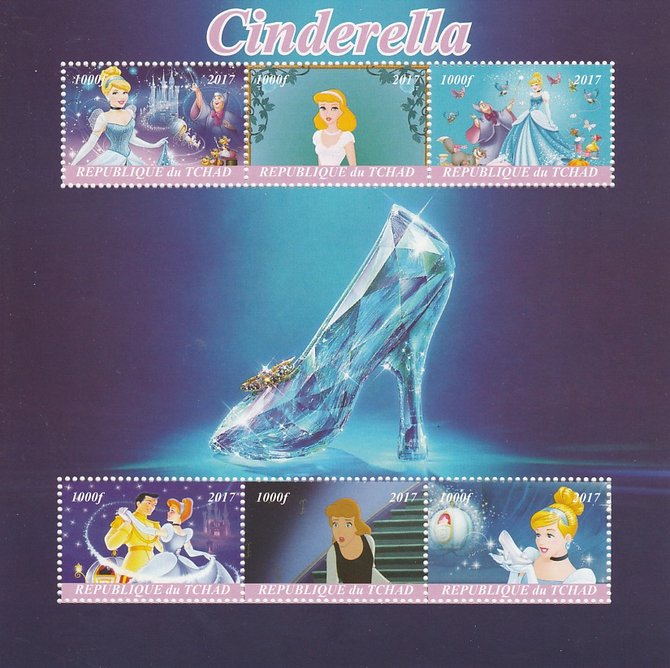 Chad 2017 Disney's Cinderella perf sheetlet containing 6 values unmounted mint. Note this item is privately produced and is offered purely on its thematic appeal. .