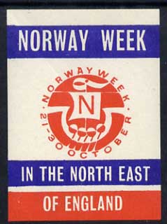 Cinderella - 1960c Norway Week in the North East of England 21-30 October, red white & blue label with stylised Viking Ship